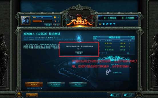 在DotA中,最令人的痛恨的除了作弊以外(《天翼决》的反作弊系统可以完全杜绝作弊的存在),就是挂机和秒退了。《天翼决》对挂机和秒退的玩家有完善的惩罚机制,五分钟之内没有任何动作的挂机玩家会被自动踢出游戏,并且有在一定时间内无法开始新游戏的惩罚。秒退玩家同样如此,他们在挂机和秒退之后,平台经验不会增加,积分也会相应减少,另外个人统计中的“离开局数”还会相应增加。
